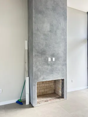 Sala de estar e jantar com lareira,