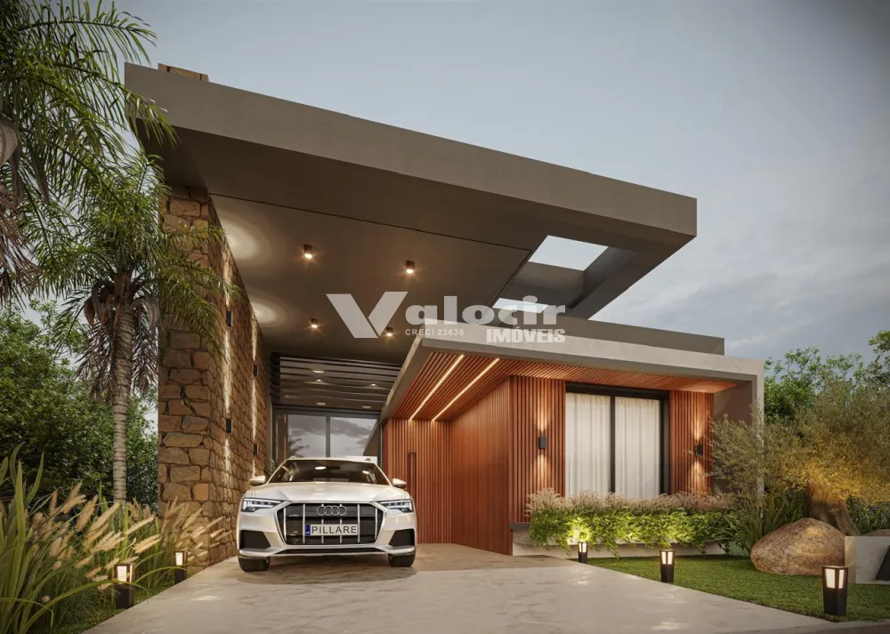 Design arquitetônico integrado à natureza: amplos vidros, pé-direito alto e materiais de luxo (madeira e pedra natural)