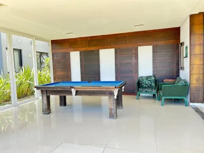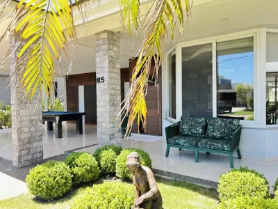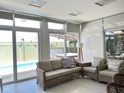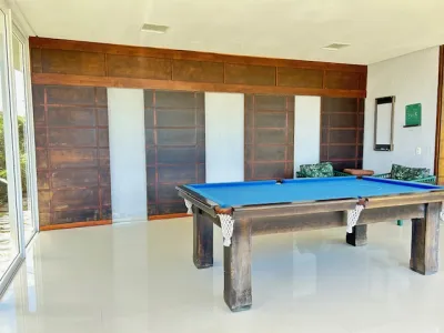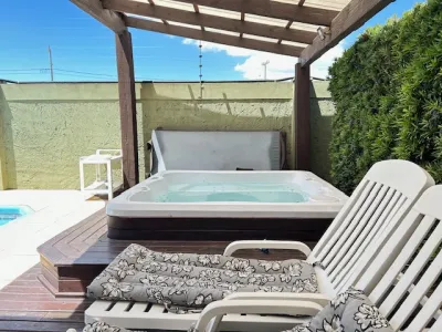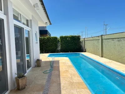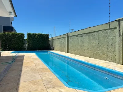 Piscina grande, deque de madeira, frente norte
