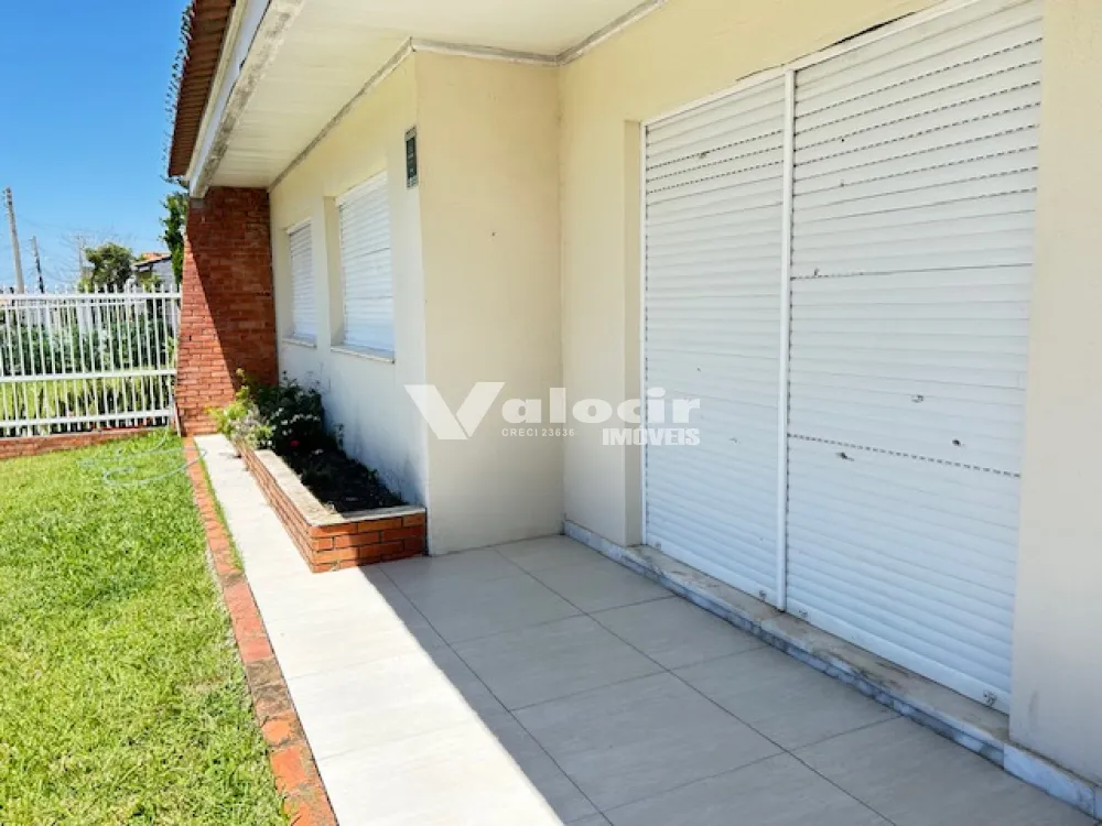 Varanda na frente e abrigo para um carro.